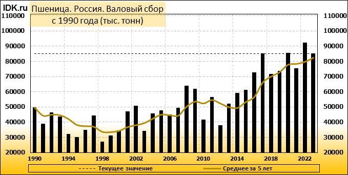 Валовый сбор: оценка пересмотрена в сторону повышения до 85000 тысяч тонн. Показатель вырос на 4.29 процента.