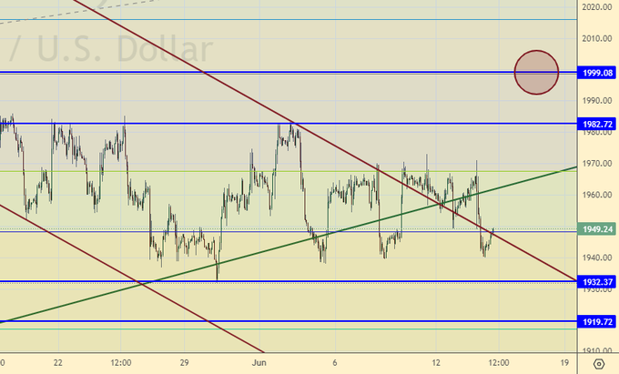 Продажа: при подъеме к 2000. Стоп: 2030. Цель: 1875. Кто остался в позиции от 2050 и 2038, держите стоп на 1975. Цель: 1875.