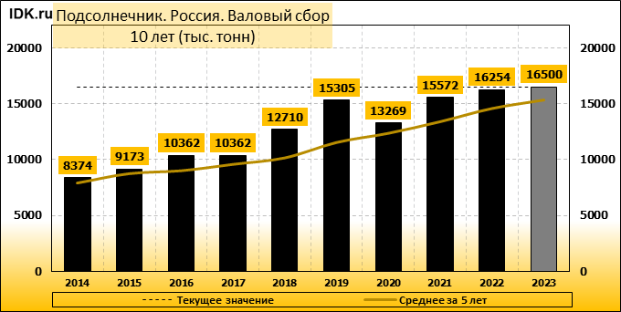 Валовый сбор: оценка не изменилась и составляет 16500 тысяч тонн.