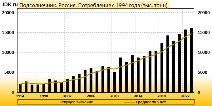 Потребление: показатель не изменился и составляет 16080 тысяч тонн.