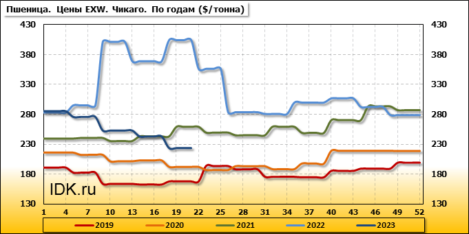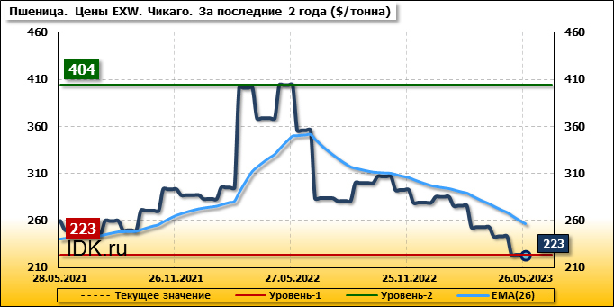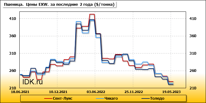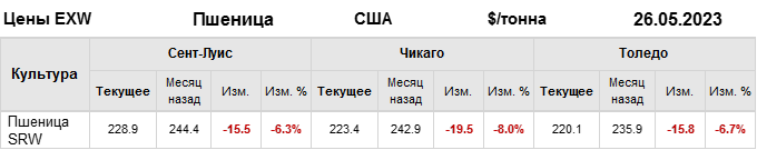 В Чикаго (США) внутренние цены на пшеницу SRW упали на 19.5 $/т. и на отчетный месяц составляют 223.38 доллара за тонну.