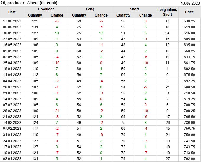 Открытый интерес производителей упал на 6 тыс. контрактов. Объем контрактов, направленных на хеджирование, составляет 124 570 штук. Деньги производителей в течение прошлой недели уходили с рынка не видя привлекательности в текущей ситуации.