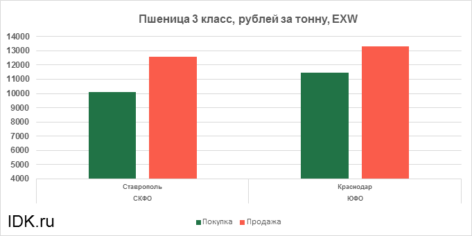 В СКФО цена выросла на 427 рублей, до 11340 рублей за тонну.