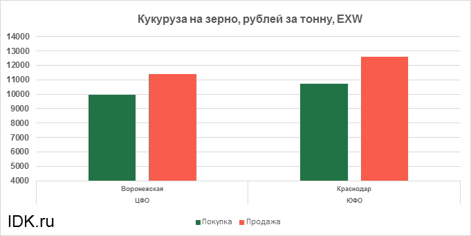 За прошедшую неделю с 12.06.2023 по 16.06.2023 средняя цена кукурузы на зерно, согласно выставленным заявкам трейдеров, упала по всем округам на 855 рублей. Средняя цена составляет 11163 рубля за тонну.