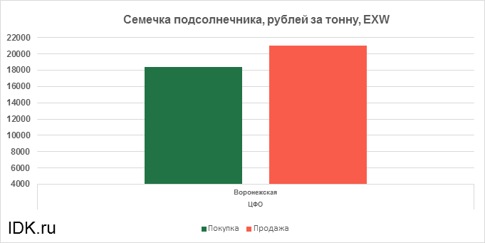 За прошедшую неделю с 12.06.2023 по 16.06.2023 средняя цена семечки подсолнечника, согласно выставленным заявкам трейдеров, выросла по всем округам на 157 рублей. Средняя цена составляет 19735 рублей за тонну.