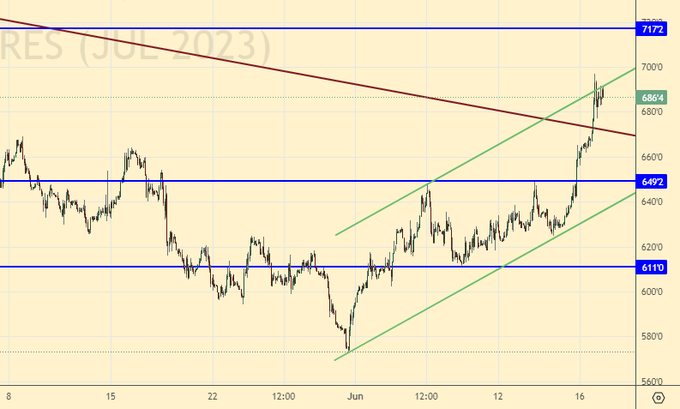 Покупка: нет. Кто остался в позиции от 555.0, перенесите стоп на 623.0. Цель: 650.0. Можно закрыть 20% позиции.