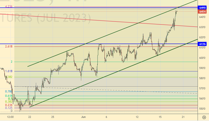 Мысли о том, что в период кризиса, или, скажем, отсутствия роста, сильные мира сего будут забирать деньги через рост стоимости еды и ряда критически важных услуг (здравоохранение, коммунальные платежи, образование) вновь начинают появляться в голове, когда смотришь на текущие графики зерновых и сои. Будем надеяться, что текущий рост остановится через 5 – 10%. В противном случае мы можем получить высокие цены на фоне рекордного урожая. А что тогда будет с ценами в 24-м году, если мы столкнемся с падением валового сбора?