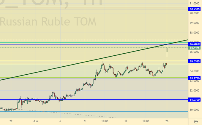 События в выходные, происходившие в политическом спектре РФ, наложат свой негативный отпечаток на курс рубля к доллару сегодня. Скорее всего, мы будем склонны к тому, чтобы пробиваться к 90.00. Возможно, что на это потребуется несколько дней. Сложно предположить, что на данный момент на рынке будет царить оптимизм.