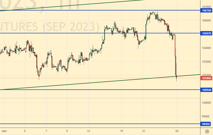 Продажа: сейчас и в случае роста к 104000. Стоп: 106000. Цель: 90000.