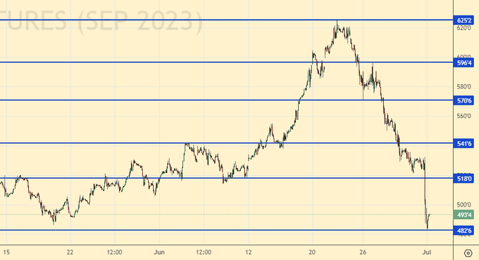 Пшеница (июльский контракт, CME Group, исполнение 14.07.2023)