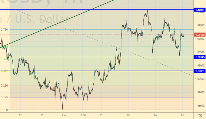 Продажа: нет. Кто в позиции от 1.0950, держите стоп на 1.0960. Цель: 1.0780.