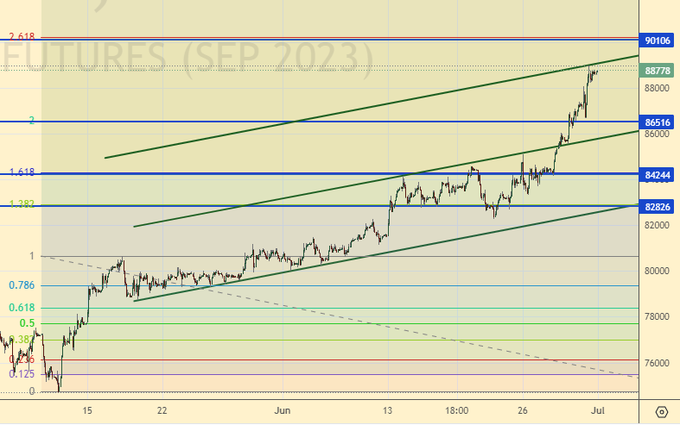 Покупка: нет. Кто в позиции от 84200, перенесите стоп на 88400. Цель: 90000.