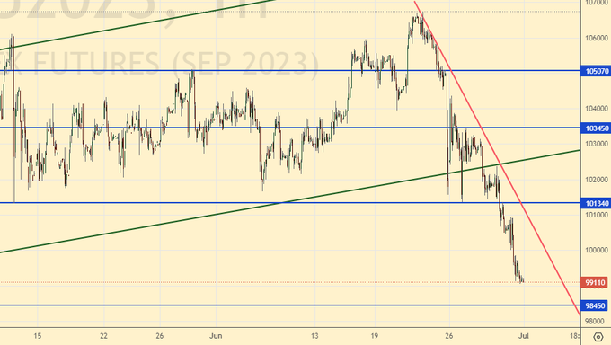 Продажа: нет. Кто в позиции от 104000, перенесите стоп на 103000. Цель: 80000.