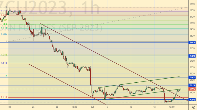 Кукуруза (июльский контракт, CME Group, исполнение 14.07.2023)