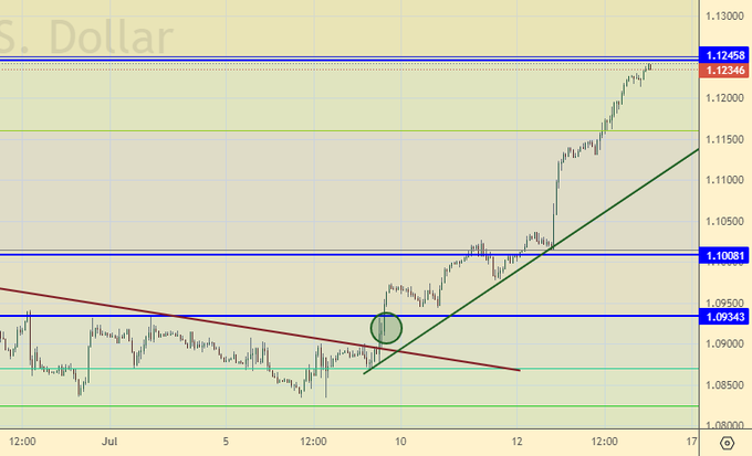 Ага. Пришли мы на промежуточную цель на 1.12000. Сейчас должен быть откат, очень хотелось бы к 1.1000. На снижении можно добавить к лонгам. Цены на газ в Европе продолжают оставаться на низких уровнях, что может привести к замедлению инфляции в Европе следом за США.