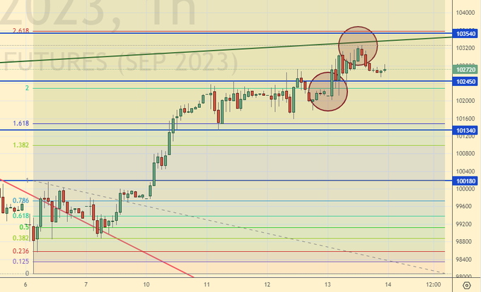Продажа: нет. Кто в позиции от 103000, держите стоп на 105000. Цель: 90000.
