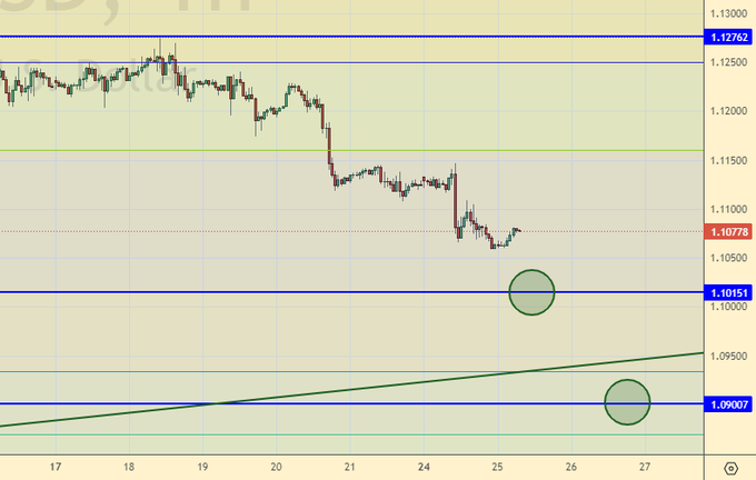 Для покупок было бы оптимальным снижение к 1.1000, а идеальным падение к 1.0900. Если ФРС оставит в среду ставку без изменений, и «вдруг» ЕЦБ в четверг сделает тоже самое, то тогда евро может оказаться под давлением. Ждем заседаний регуляторов.