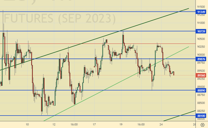 Продажа: нет. Кто в позиции от 90000, держите стоп на 90600. Цель: 85000.
