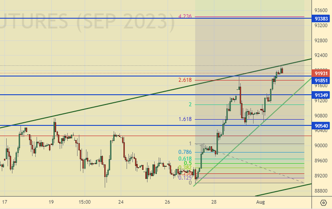 Покупка: нет. Кто в позиции от 90800, перенесите стоп на 90600. Цель: 99750.