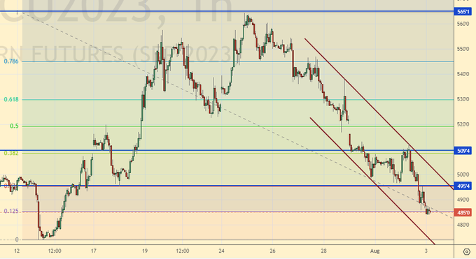 Кукуруза (сентябрьский контракт, CME Group, исполнение 14.09.2023)