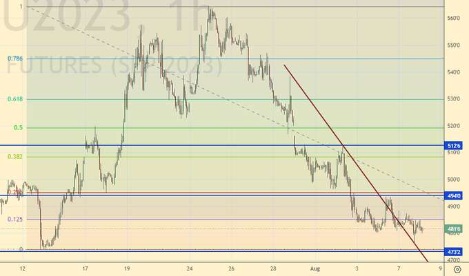 Снова затянуло нас в покупку. Будем стоять, понимая при этом, что до 10-го сентября рынок может нарисовать нам новый минимум. Страшно.