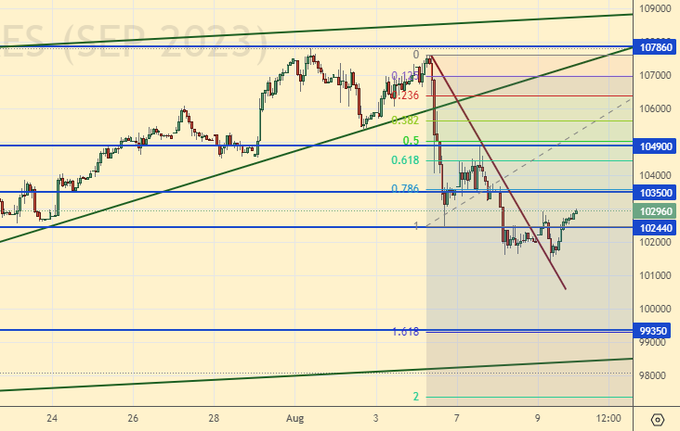 Взяли кусок вниз от 107000 до 102600. Нельзя исключать восстановления рынка до 103500, после чего падение скорее всего будет продолжено.
