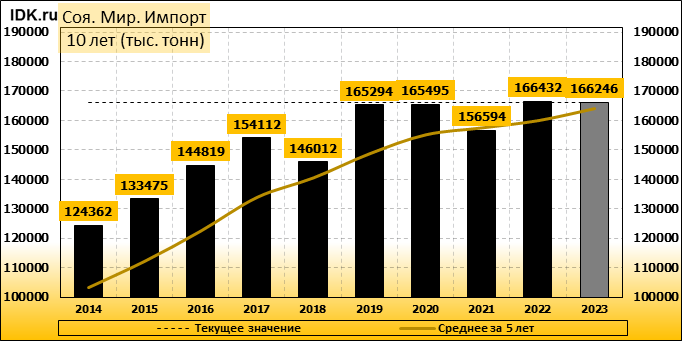Импорт: составит 166246 тысяч тонн. Значение по прошествии месяца упало на -0.2 процента.