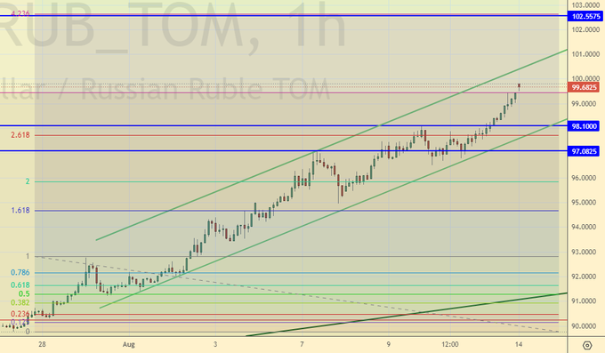 Мы растем, причем пока безостановочно. Скорее всего мы достигнем в ближайшие дни уровня 102.50, после чего будет небольшой откат. Отметим, что технически рынок смотрит на 114.00. Пока не слышно о том, чтобы экспортеров каким-либо образом обязали бы возвращать валюту в страну. Видимо, опустить валютный курс проще.