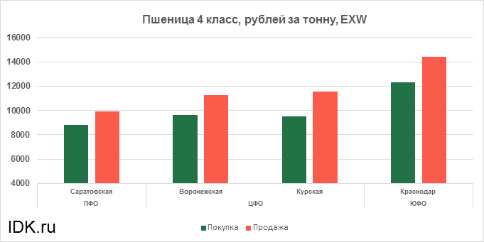 «На рынке зерна отмечаем дальнейший рост цены реализации. Средняя цена, по которой сельхозтоваропроизводители на минувшей неделе продавали урожай пшеницы третьего класса, составила 12214 рублей за тонну, зерна четвертого класса — 11034 рубля за тонну», — сообщил Лещенко.