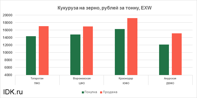 За прошедшую неделю с 28.08.2023 по 01.09.2023 средняя цена кукурузы на зерно, согласно выставленным заявкам трейдеров, выросла по всем округам на 30 рублей. Средняя цена составляет 16463 рубля за тонну.