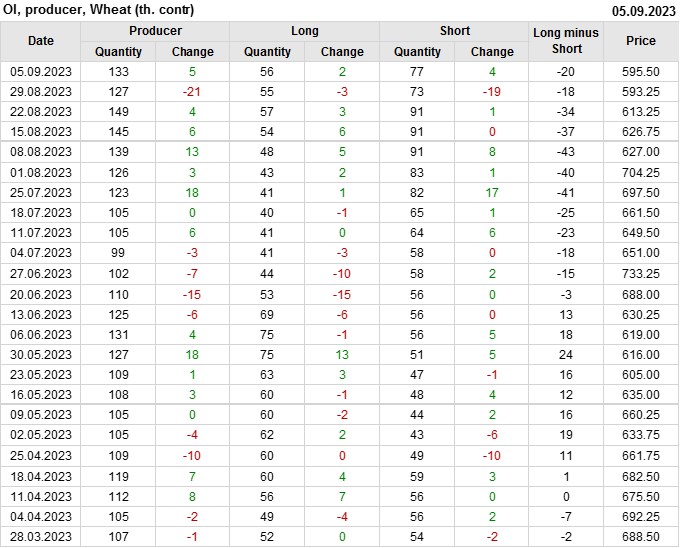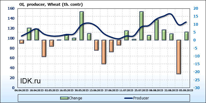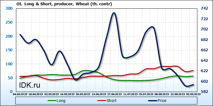 Открытый интерес производителей вырос на 5 тыс. контрактов. Объем контрактов, направленных на хеджирование, составляет 132 952 штуки. Деньги производителей в течение прошлой недели приходили на рынок поддерживая тенденцию.