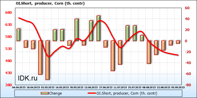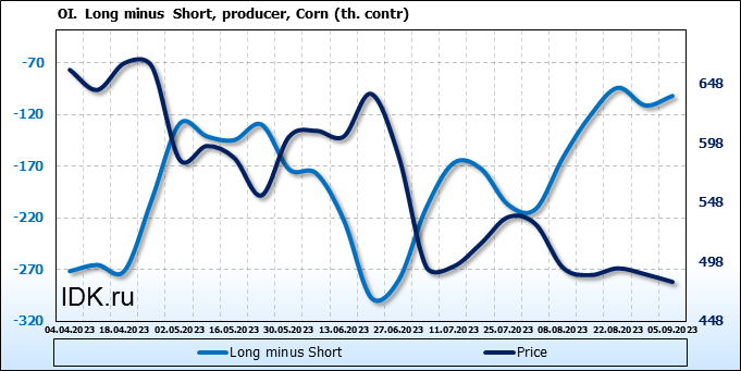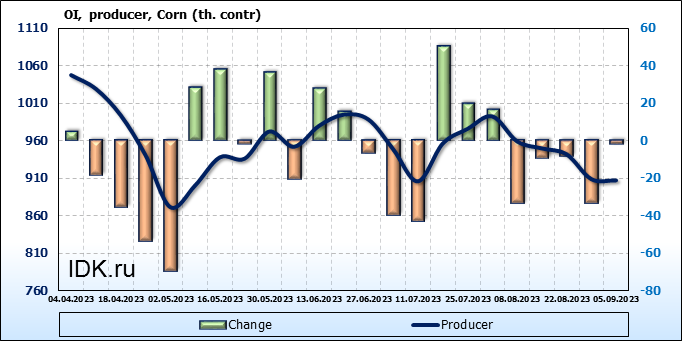 Открытый интерес производителей упал на 2 тыс. контрактов. Объем контрактов, направленных на хеджирование, составляет 906 604 штуки. Деньги производителей в течение прошлой недели уходили с рынка не видя привлекательности в текущей ситуации.