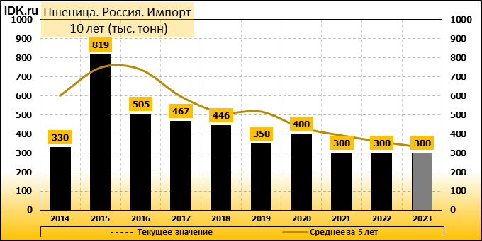 Импорт: составит 300 тысяч тонн. Значение по прошествии месяца не изменилось.