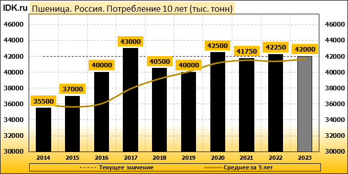 Потребление: показатель не изменился и составляет 42000 тысяч тонн.