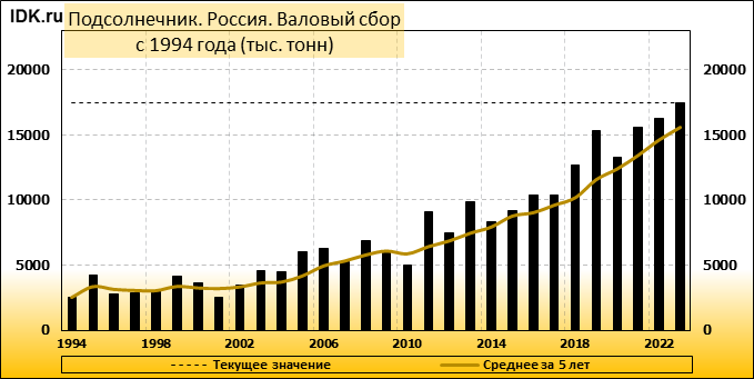 Прошлый год по урожаю маслосемян подсолнечника был рекордным для республики — собрано 56,2 тыс. тонн семян, что в 1,7 раза больше 2021 года. Средняя урожайность в прошлом году достигла 26,1 ц/га, превысив показатель 2021 года на 11%.