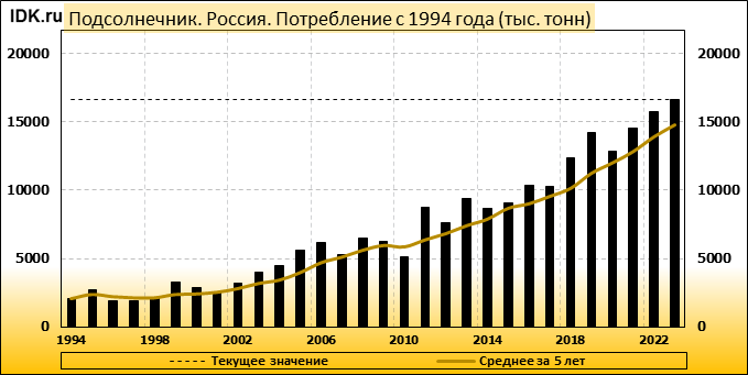Потребление: показатель не изменился и составляет 16680 тысяч тонн.