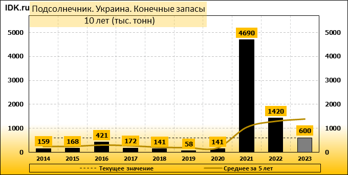 Конечные запасы: составят 600 тысяч тонн. Оценка с последнего отчета снизилась на -62.62 процента.