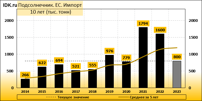 Импорт: составит 800 тысяч тонн. Значение по прошествии месяца не изменилось.