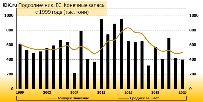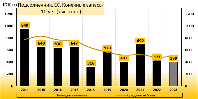 Конечные запасы: составят 399 тысяч тонн. Оценка с последнего отчета снизилась на -5.9 процента.
