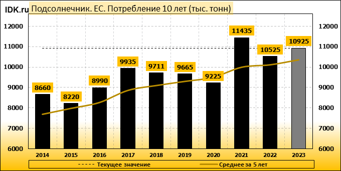 Потребление: показатель пересмотрен в сторону понижения до 10925 тысяч тонн. Значение упало на -0.91 процента.