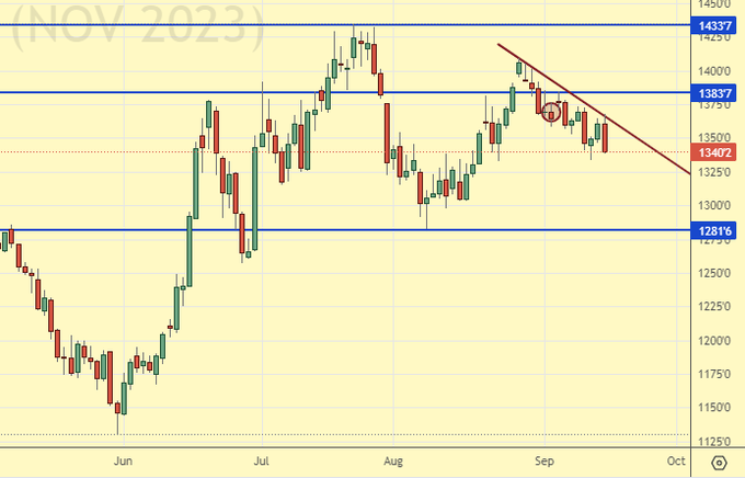 Сценарий роста: рассматриваем октябрьский фьючерс, дата экспирации 27 сентября. Если в Европе будет холодная зима, а предпосылки есть, то газ улетит в космос. Держим лонги.