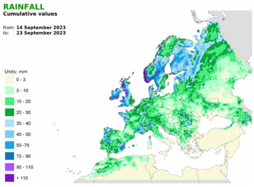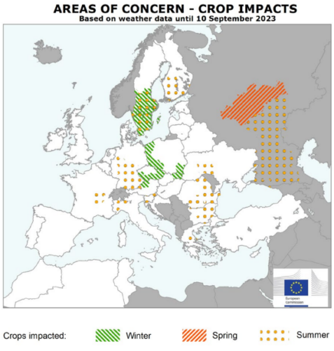 Избыток осадков продолжал поражать многие районы Центральной и Северной Европы, оказывая негативное воздействие на яровые культуры (в основном из-за увеличения заболеваемости), а также на качество зерна и урожайность озимых и яровых зерновых, которые не удалось собрать вовремя. В некоторых из этих регионов также был задержан сев озимого рапса.