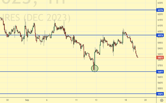 Не дали нам ничего заработать наверху, забранный ход вверх от 572.0 до 583.0, это не то, что хотелось бы. В текущих условиях ждем попытки прохода к 550.0.