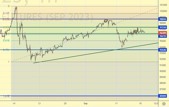 Продажа: нет. Кто в позиции от 98400, держите стоп на 97600. Цель: 90000.