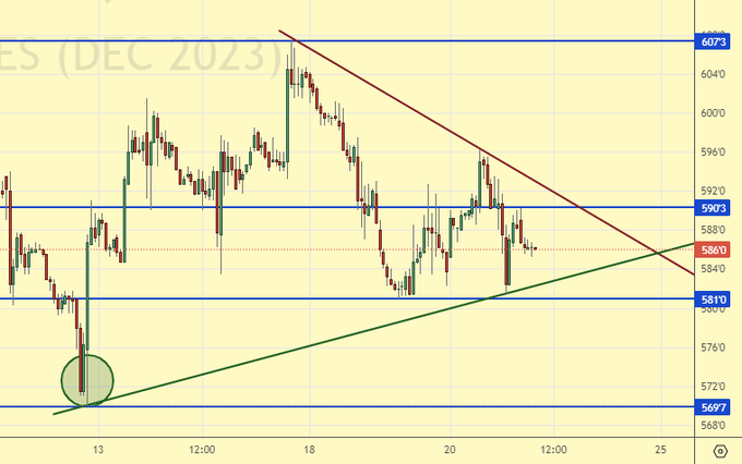 Пока шансы на падение остаются. Мы продолжаем ждать тестирование уровня 570.0 с перспективой хода на 550.0.