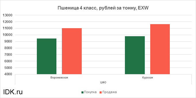 За прошедшую неделю с 18.09.2023 по 22.09.2023 средняя цена на пшеницу 4-го класса, согласно выставленным заявкам трейдеров, выросла по всем округам на 320 рублей. Средняя цена составляет 9874 рубля за тонну.