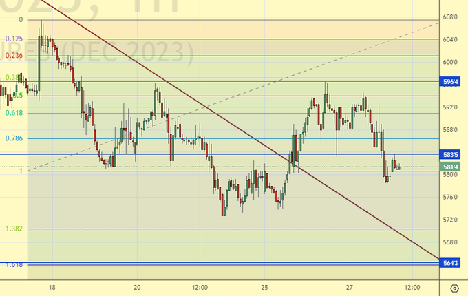 Пшеница (декабрьский контракт, CME Group, исполнение 14.12.2023)