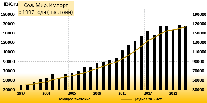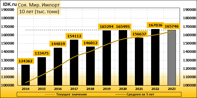 Импорт: составит 165746 тысяч тонн. Значение по прошествии месяца упало на -0.14 процента.