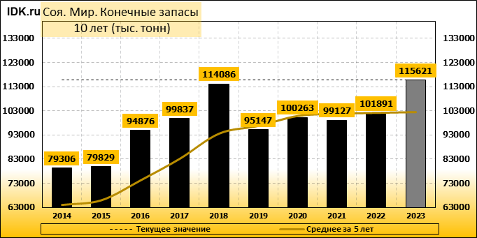 Конечные запасы: составят 115621 тысячу тонн. Оценка с последнего отчета снизилась на -3.04 процента.