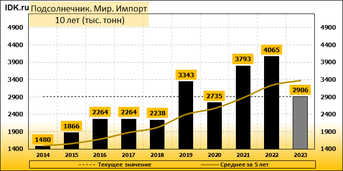 Импорт: составит 2906 тысяч тонн. Значение по прошествии месяца упало на -17.11 процента.